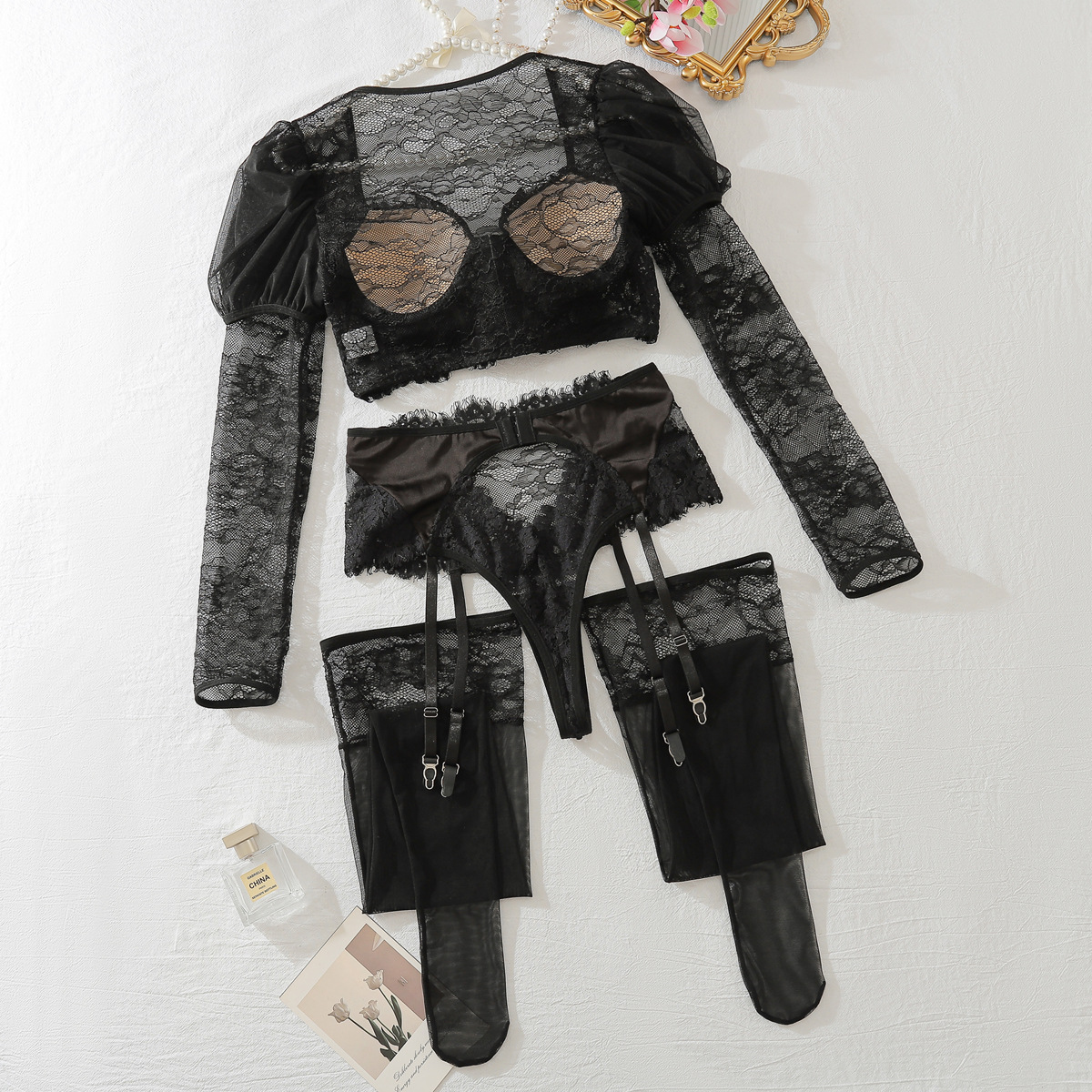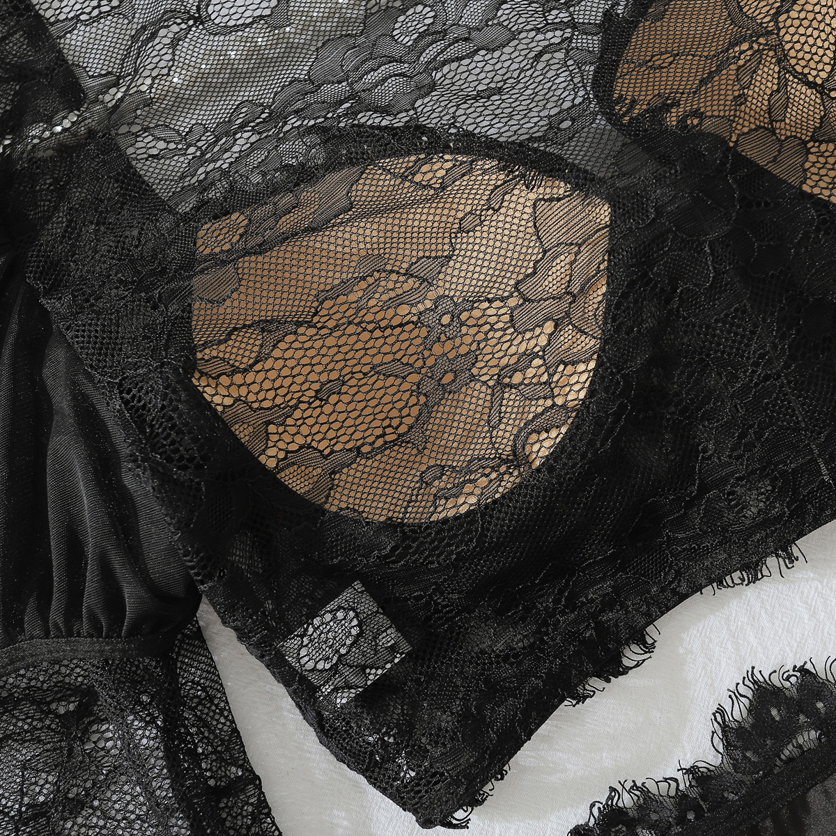 Lace Ribbon Stockings Slim-fitting Belly Contracting Split Suit elegant