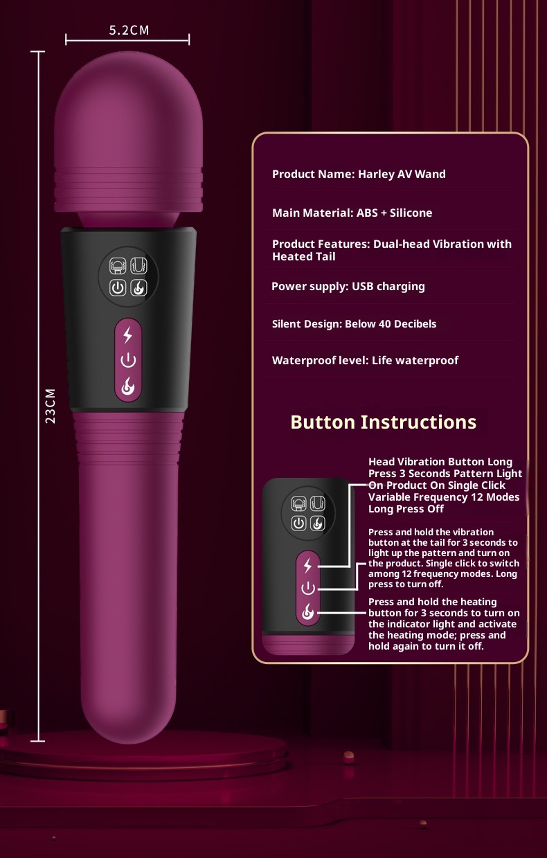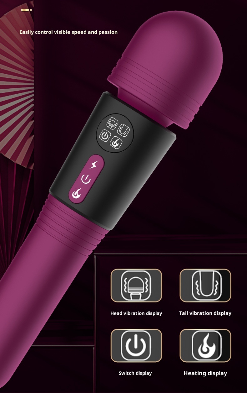 Double-headed AV Wand LCD Screen Female Warming Vibrating Wand Rechargeable